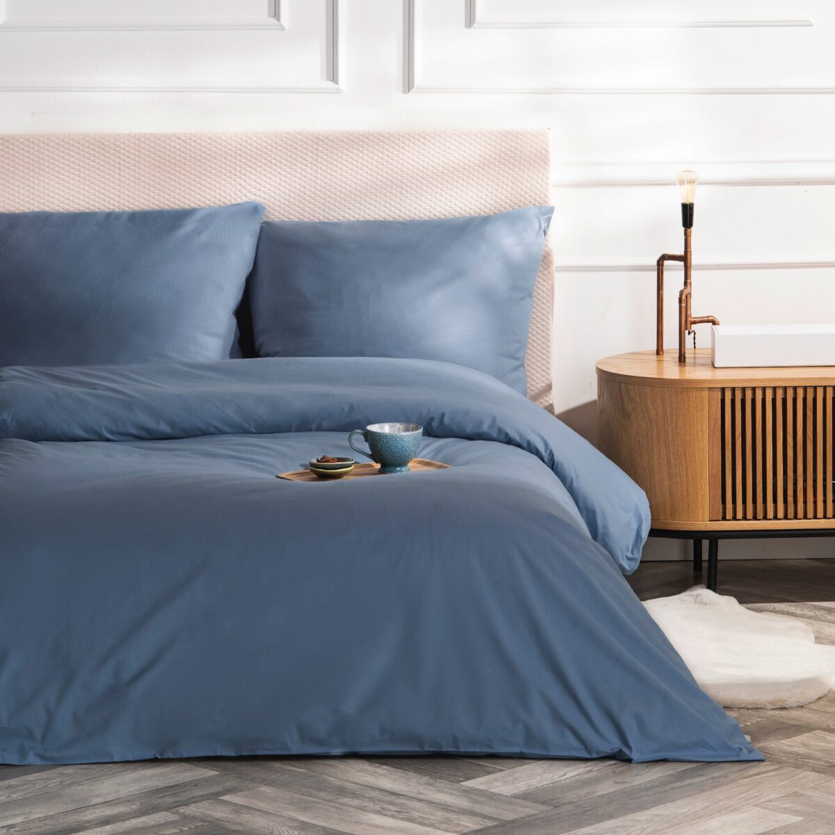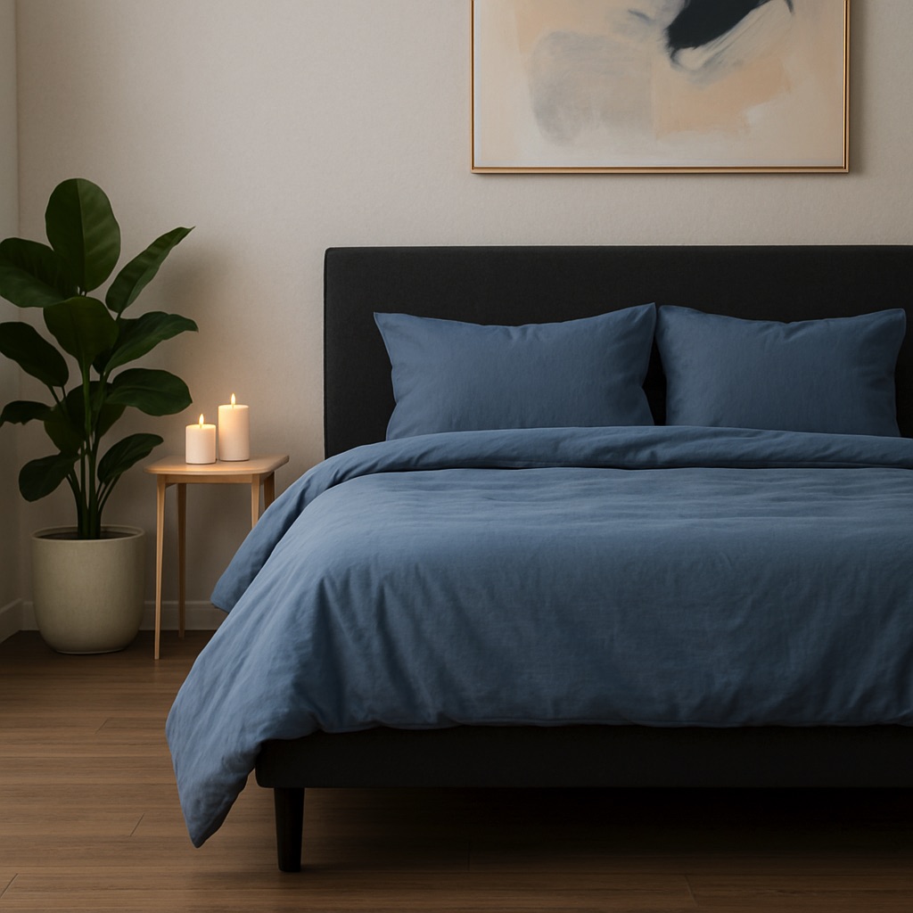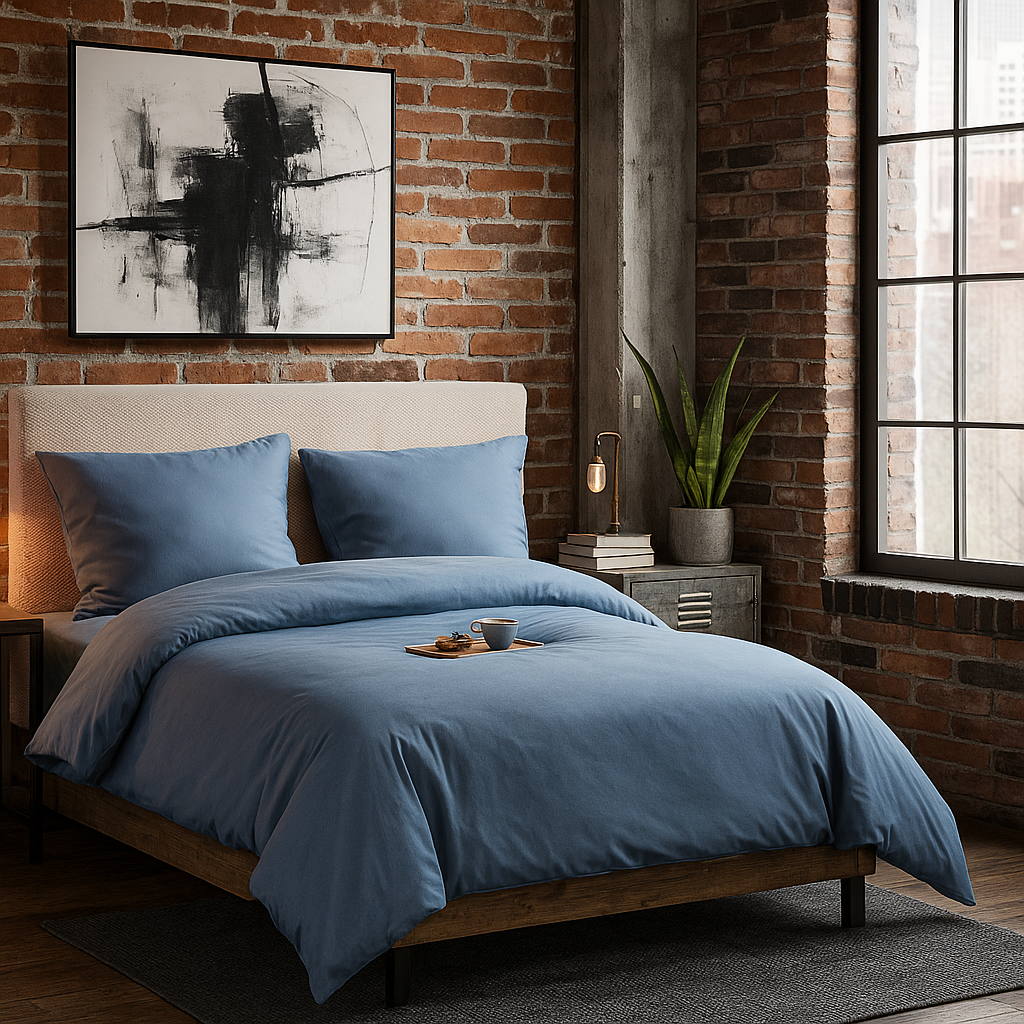 Pościel VelvetHome w odcieniu zgaszonego jeansowego niebieskiego to subtelny i elegancki kolor inspirowany naturą. Jego lekko ziemisty ton sprawia, że idealnie wpisuje się w nowoczesne, loftowe i minimalistyczne wnętrza. To doskonały wybór dla osób, które szukają niebanalnej alternatywy dla klasycznych błękitów i granatów.