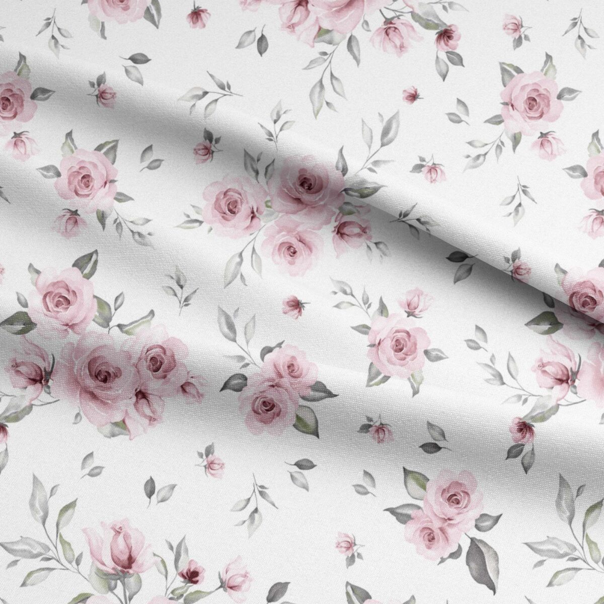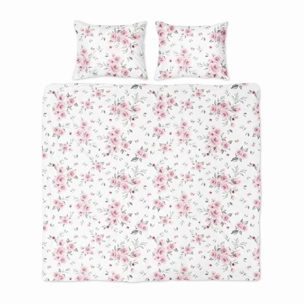 Pościel Romantyczne Róże to połączenie delikatności i ponadczasowej elegancji inspirowanej klasycznymi motywami kwiatowymi. Jasne, białe tło zdobią subtelne róże w odcieniach różu, uzupełnione delikatną zielenią liści, tworząc lekką i harmonijną kompozycję. Wzór wprowadza do sypialni atmosferę przytulności, spokoju i kobiecej subtelności, sprzyjając codziennemu relaksowi oraz komfortowemu wypoczynkowi. To idealny wybór do wnętrz w stylu romantycznym, klasycznym i boho — dla osób ceniących delikatny design i ponadczasowe piękno.