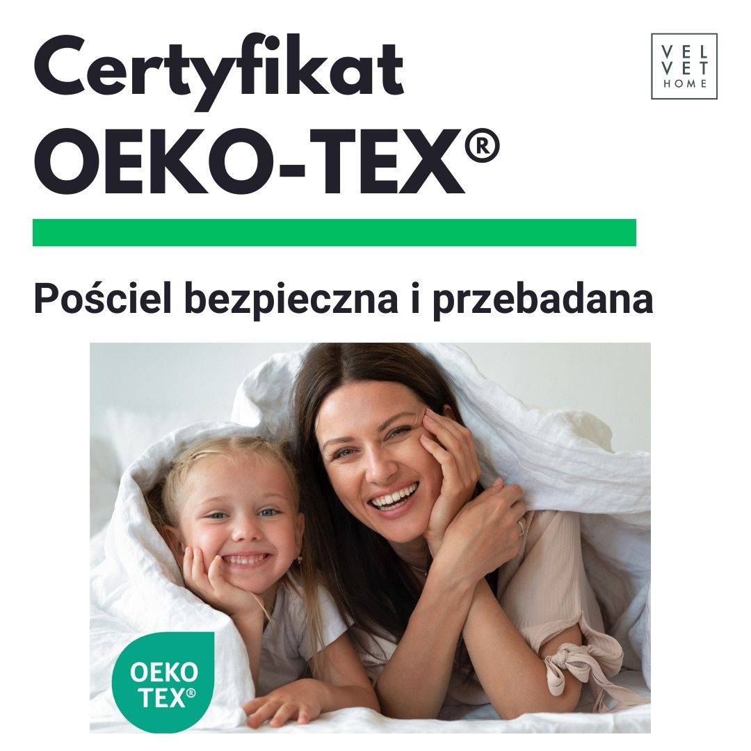 - Pościel posiada certyfikat OEKO-TEX® Standard 100 (numer certyfikatu: IW 00470) potwierdzający bezpieczeństwo dla zdrowia – również dla dzieci i alergików.