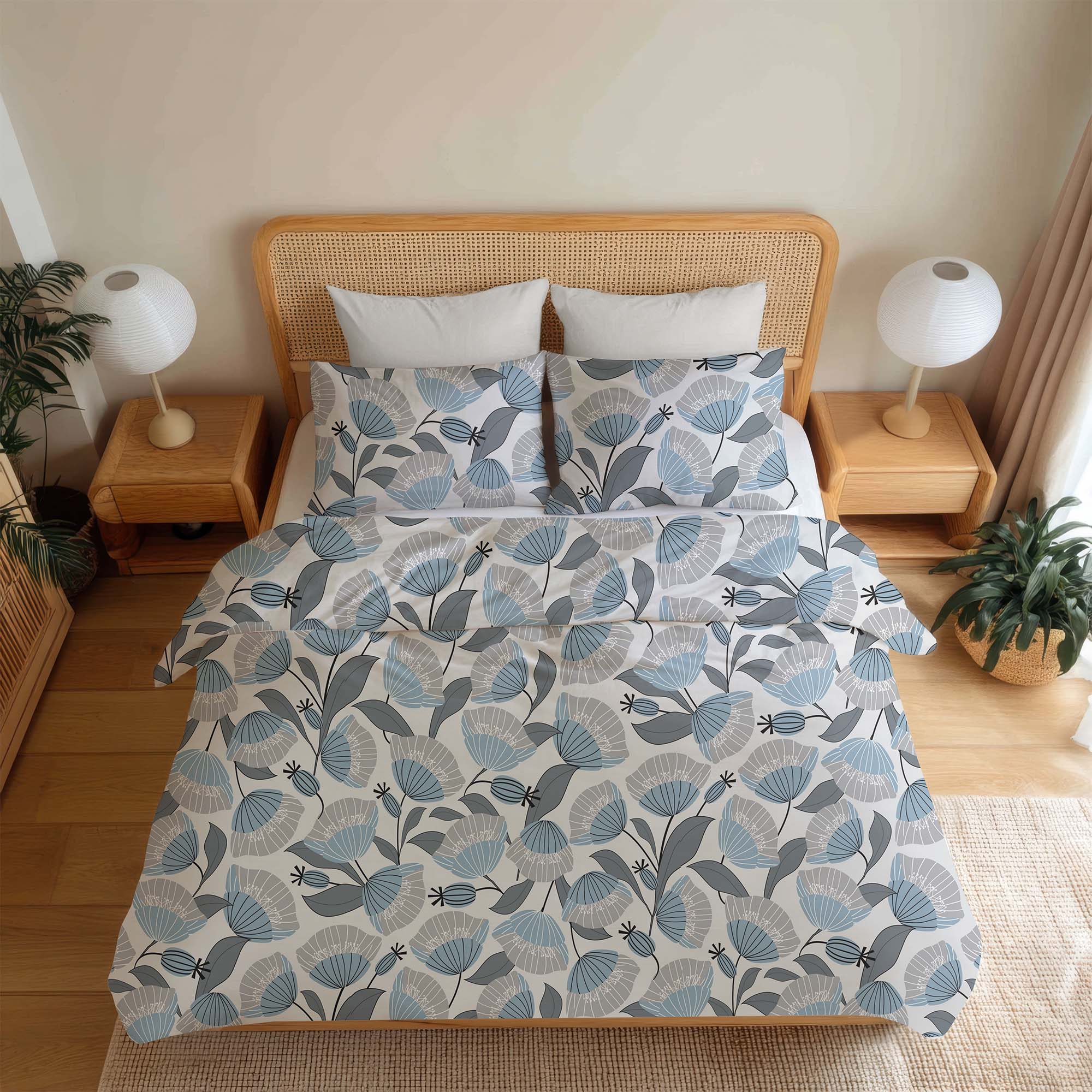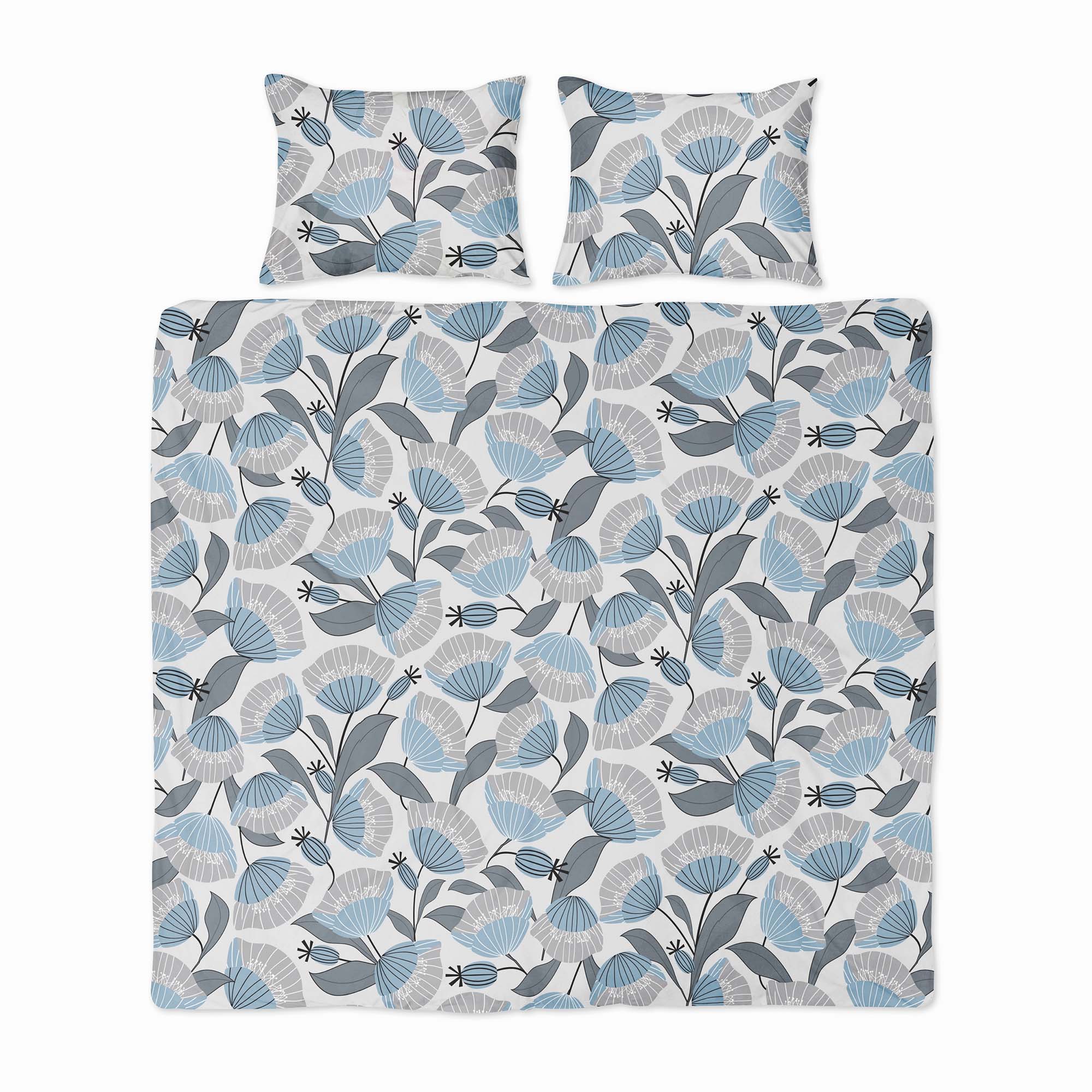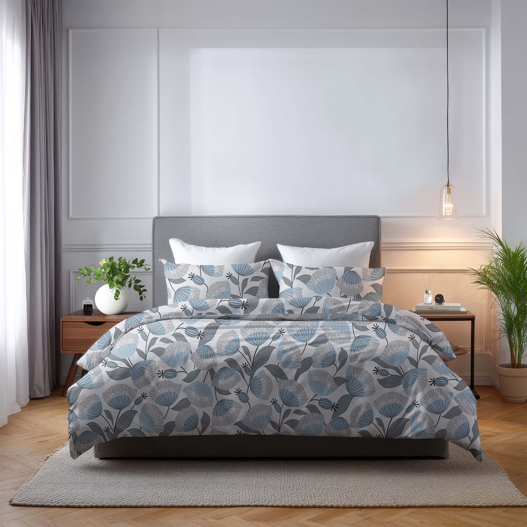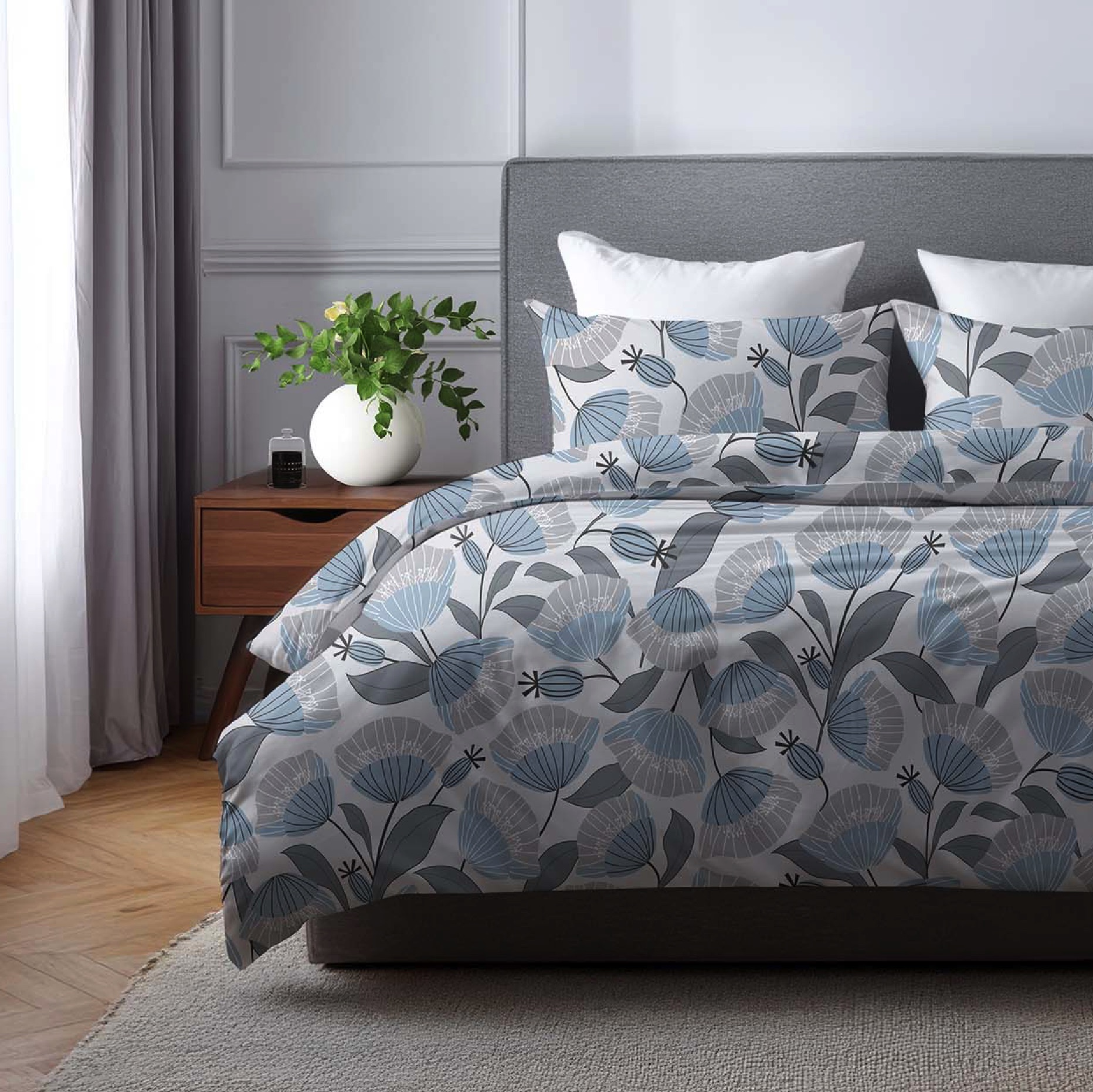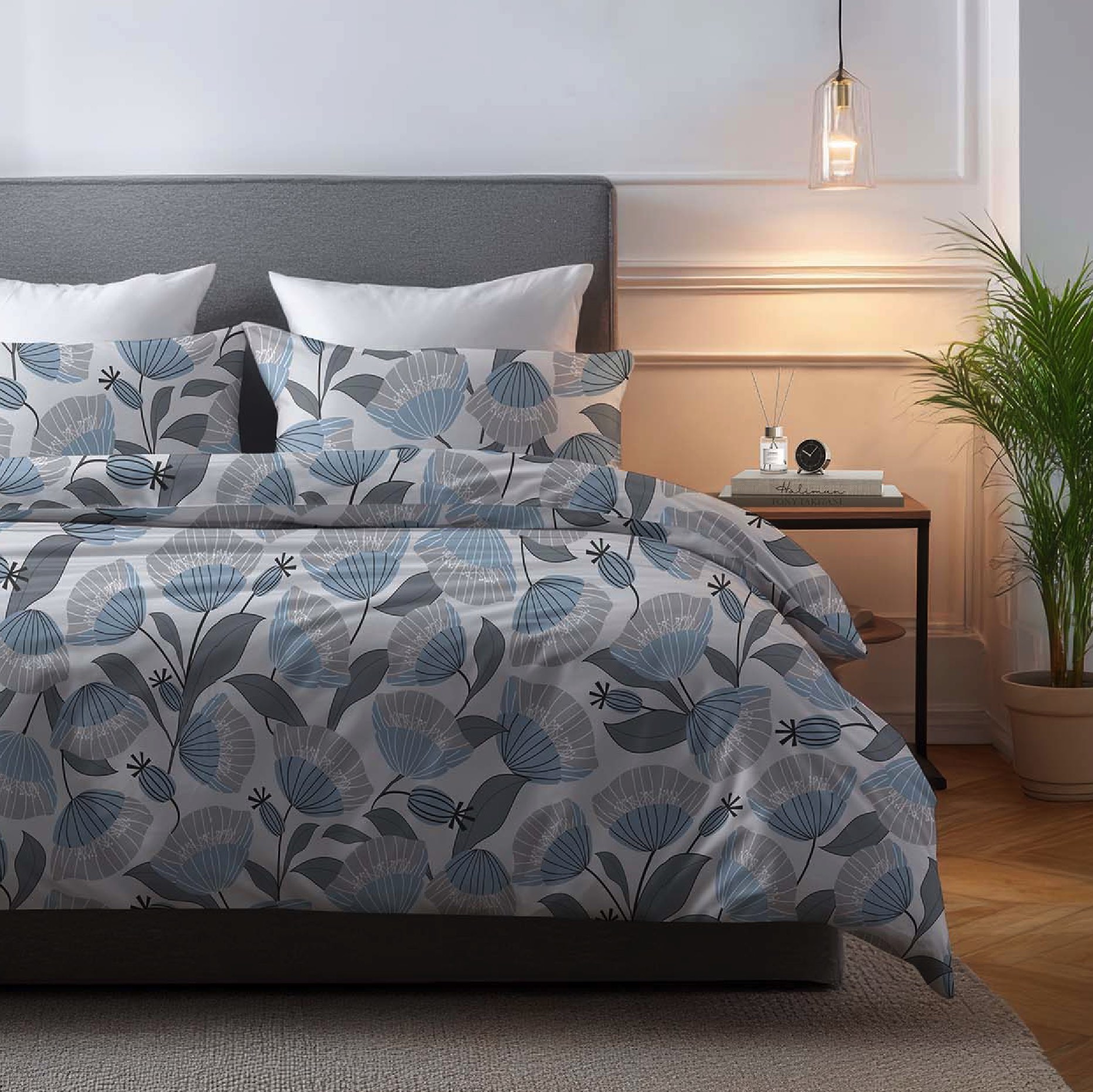 Pościel Skandynawski Ogród to połączenie nowoczesnej elegancji i naturalnej harmonii inspirowanej skandynawskim stylem. Jasne tło zdobią stylizowane motywy kwiatów i liści w odcieniach chłodnego błękitu oraz stonowanej szarości, tworząc spokojną i uporządkowaną kompozycję. Błękitno-szara kolorystyka wprowadza do sypialni atmosferę świeżości, lekkości i wizualnego ładu, sprzyjając codziennemu relaksowi i regeneracji. To idealny wybór do wnętrz w stylu nowoczesnym, skandynawskim i minimalistycznym — dla osób ceniących jasne barwy, naturalną estetykę i ponadczasowy design.