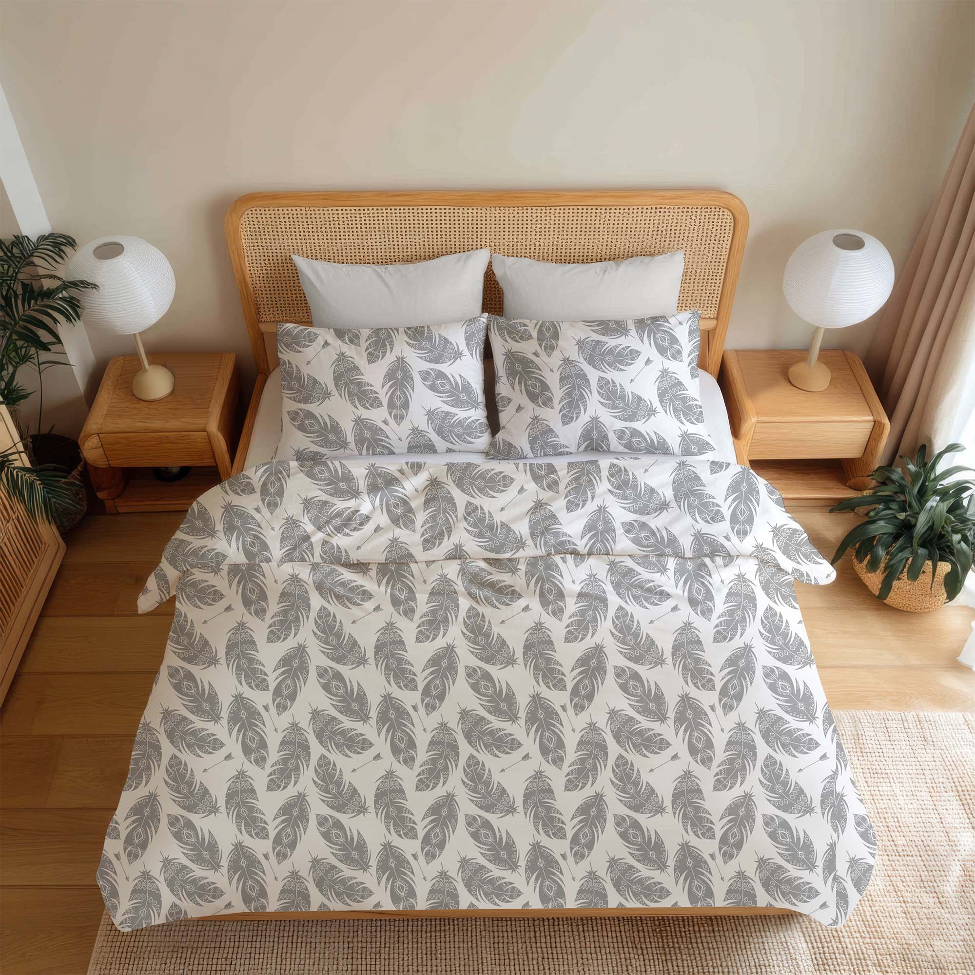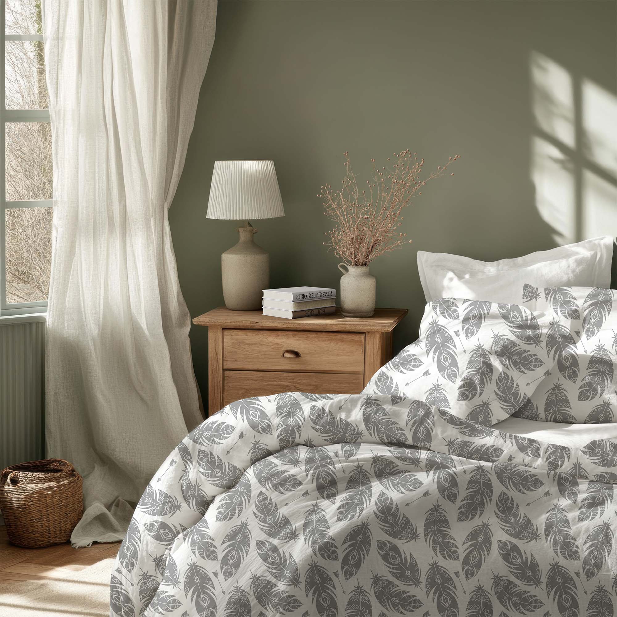 Pościel Bawełniana Szare Pióra