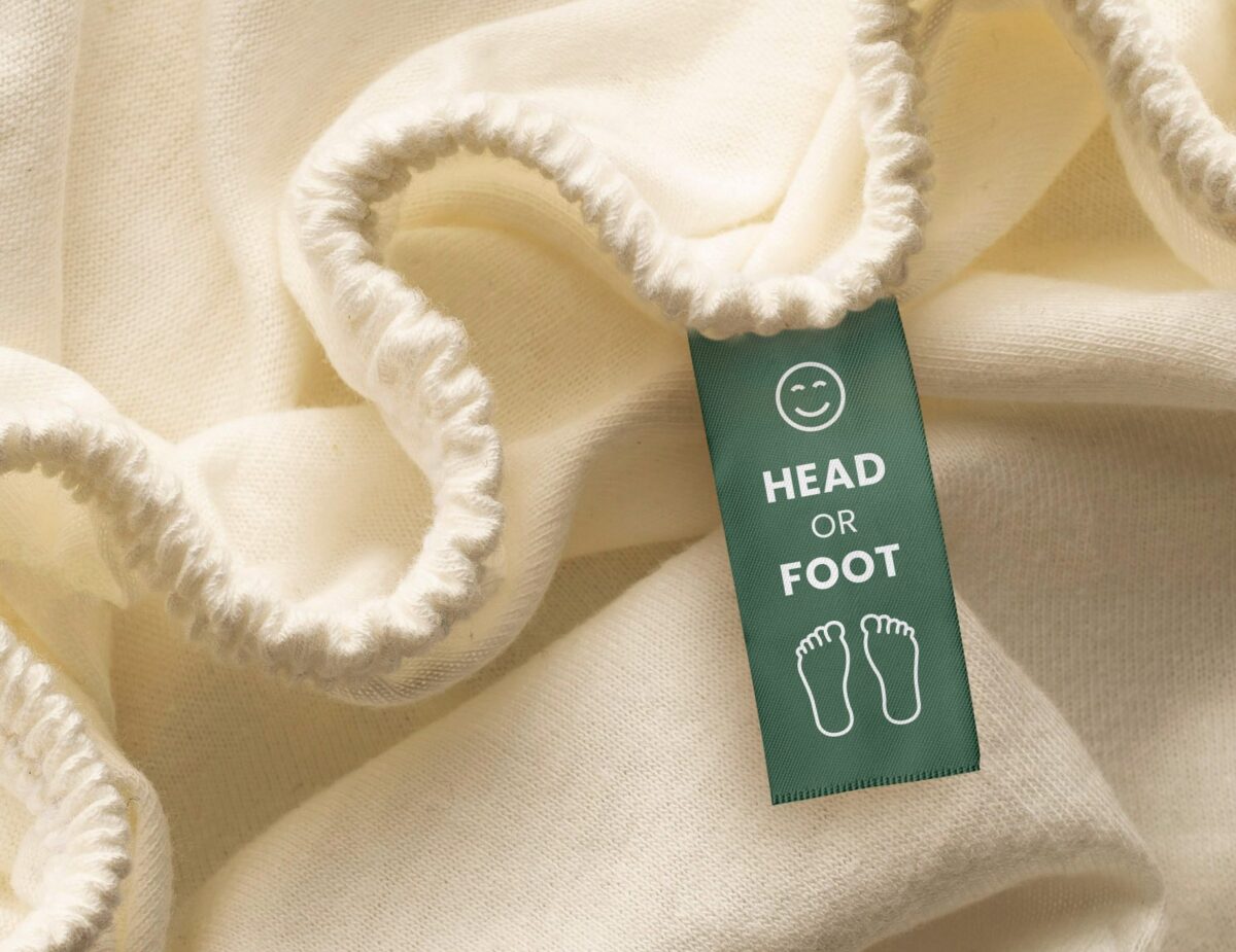 - Praktyczna metka „Head or Foot” ułatwia zakładanie, wskazując właściwy kierunek ułożenia na materacu.